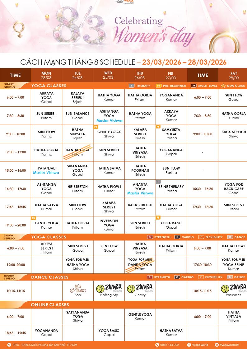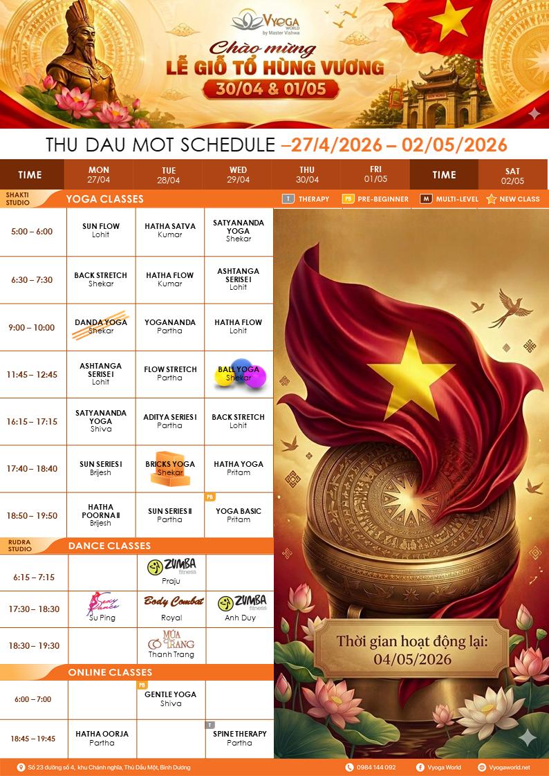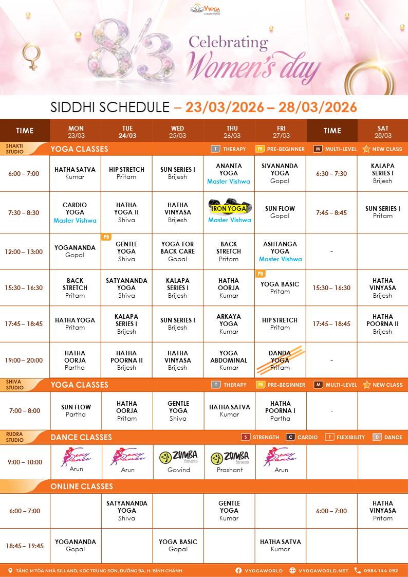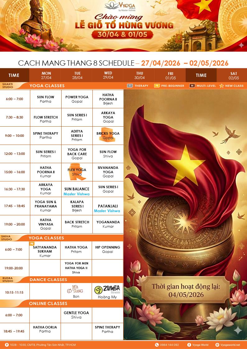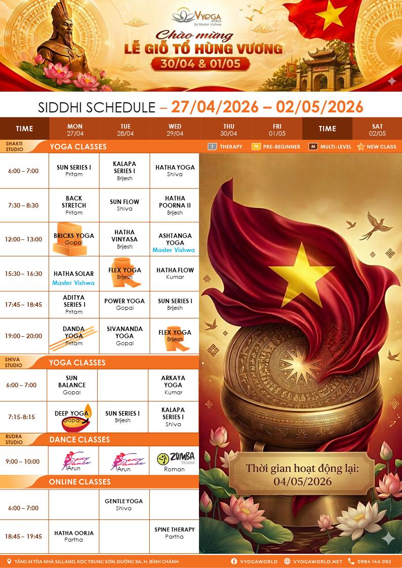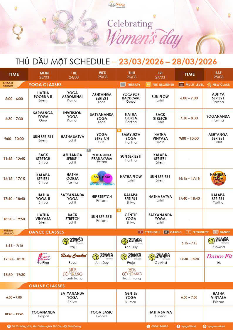 Vyoga World là chuỗi hệ thống giảng dạy Yoga hàng đầu tại Việt Nam với 100% giảng viên đến từ Ấn Độ - cái nôi của Yoga. Với 5 chi nhánh tại TP.HCM và Bình Dương, chúng tôi đang giúp đỡ cho hàng nghìn học viên cải thiện sức khỏe và vóc dáng mỗi ngày.