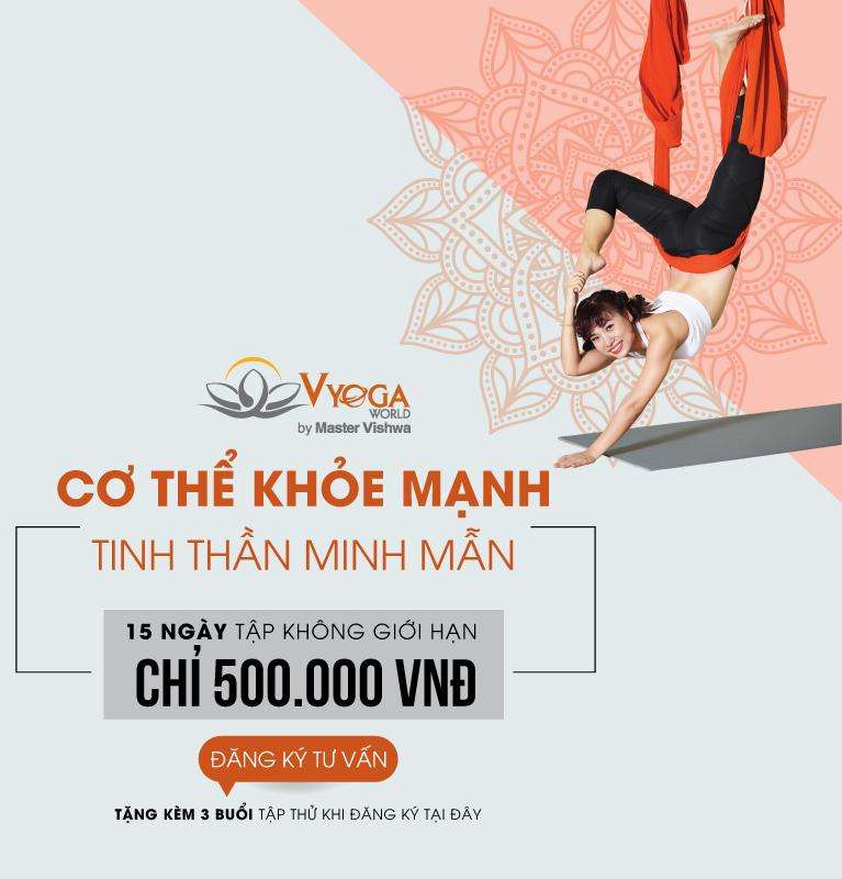 Tập Yoga đang trở thành xu hướng nổi bật trong phong cách sống của rất nhiều người nổi tiếng và thành đạt tại Việt Nam cũng như trên toàn thế giới. Vyoga World đem đến một chương trình tập luyện bùng nổ khuyến mãi với 15 Ngày Tập Không Giới Hạn chỉ 500.000 VNĐ