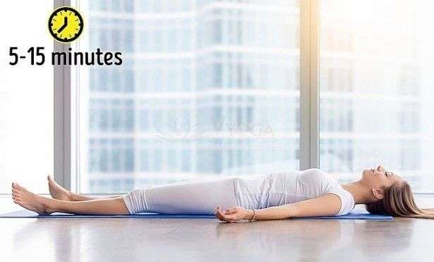 Đây là tư thế cuối cùng để kết thúc bài tập yoga, giúp cơ thể thư giãn sau khi vận động. Nằm ngửa trên sàn, lưng thẳng, hai chân rộng bằng vai, hai tay để ngửa. Thả lỏng cơ thể, hít thở đều khoảng 5 - 15 phút.