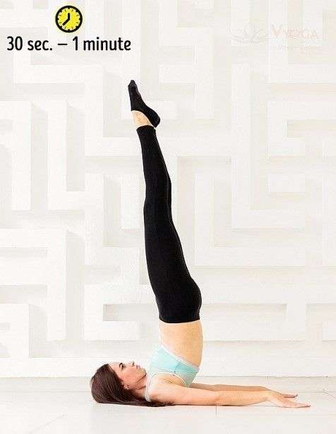 Nằm thẳng trên thảm tập. Hít sâu, đưa chân lên cao vuông góc với mặt sàn, nhẹ nhàng nâng chân và hông tách khỏi sàn, đầu gối cao trên trán. Tiếp tục hít sâu, nâng lưng lên cao và duỗi thẳng chân, mũi chân hướng lên trần nhà, cằm về phía ngực. Giữ tư thế từ 30 giây - 1 phút.