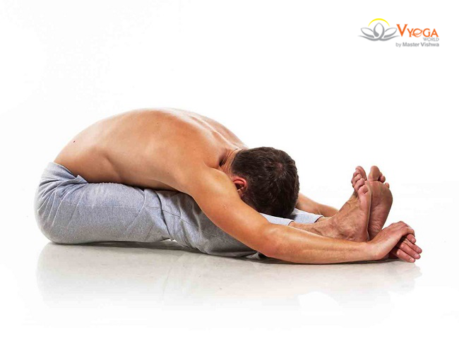 - Ngồi trên sàn nhà với hai chân duỗi thẳng về trước. Hít vào gập người về trước, cố gắng chạm các ngón tay vào chân, trán chạm vào gối.