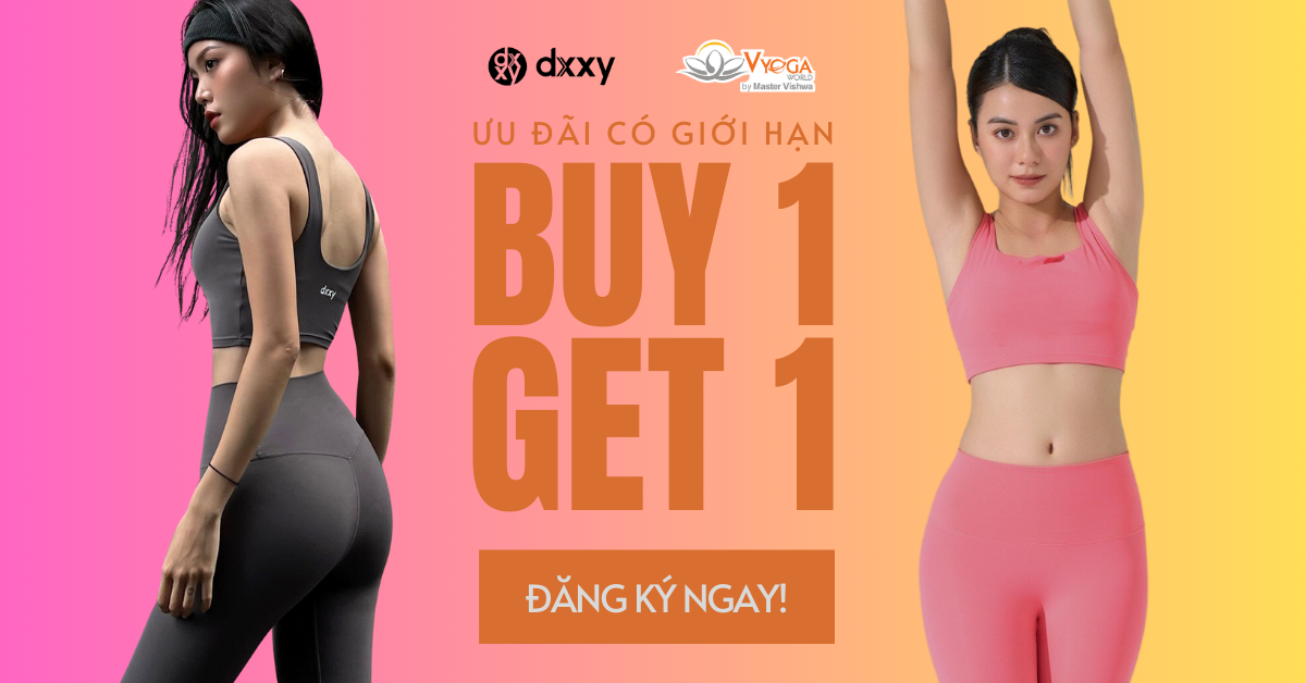 Đi tập khỏi lo trang phục vì có ngay 01 set đồ tập cao cấp (01 áo + 01 quần) từ thương hiệu DXXY Hàn Quốc trị giá 985k khi đăng ký gói tập 01 tháng giá 950k tại Vyoga World. Deal quá hời, chốt ngay thôi!