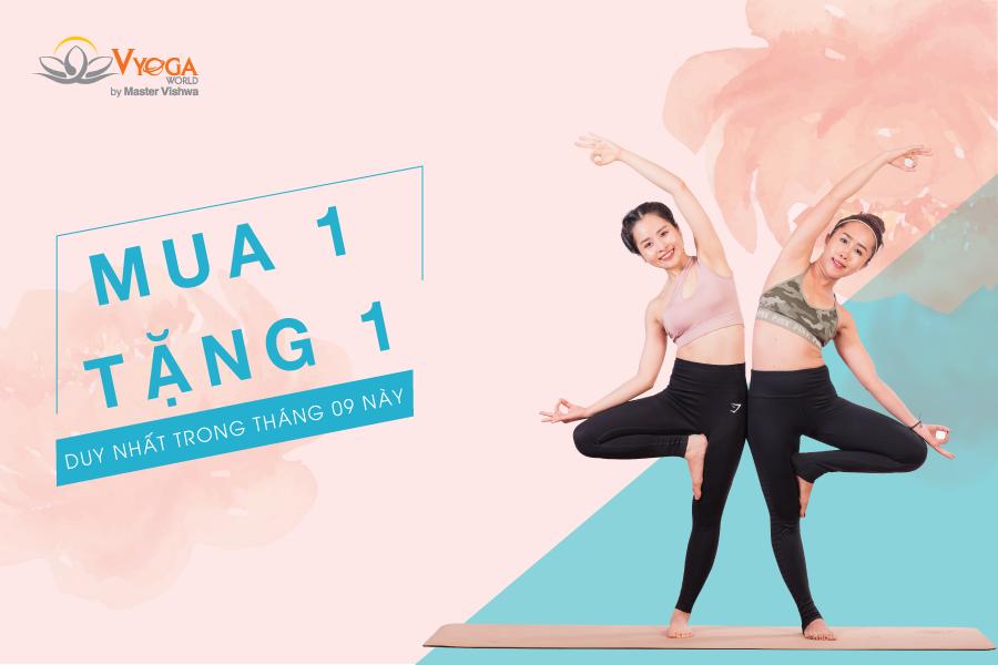 Nhằm tri ân khách hàng đã tin tưởng và ủng hộ trung tâm Vyoga World suốt thời gian qua, hệ thống trung tâm Vyoga World trân trọng giới thiệu đến quý khách hàng chương trình tập yoga ưu đãi lớn nhất: Mua 1 tháng tặng 1 tháng – Thả ga tập yoga không giới hạn số lần tập yoga trong tháng 9 này. Đây chính là cơ hội để quý khách hàng có thể trải nghiệm nhiều hơn nữa chất lượng giảng dạy tại trung tâm Vyoga World với chi phí tối ưu nhất.