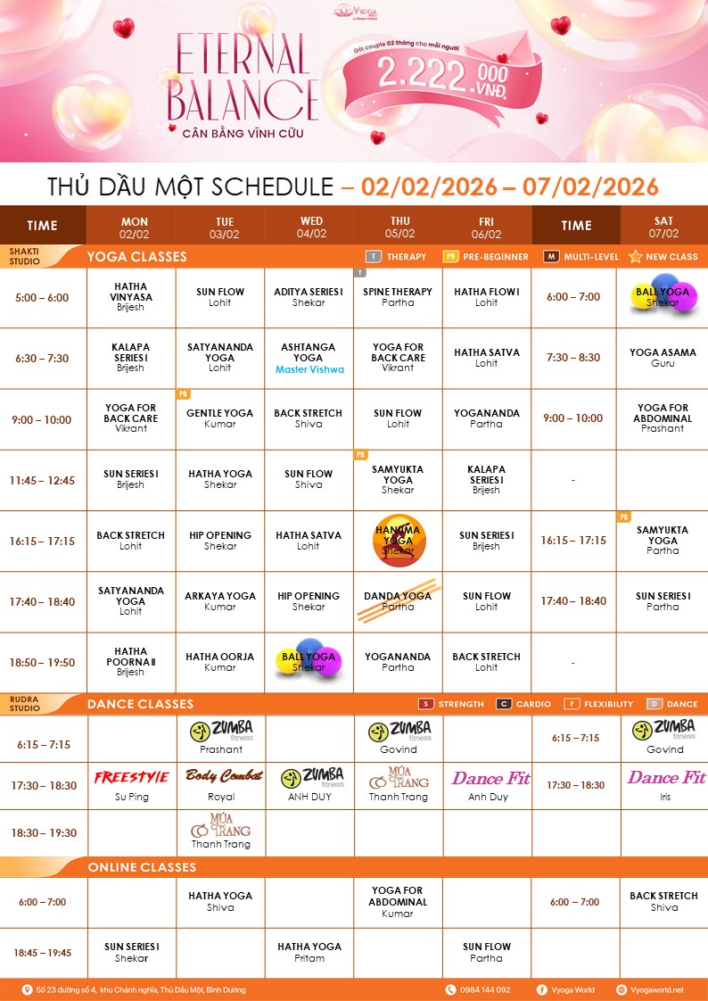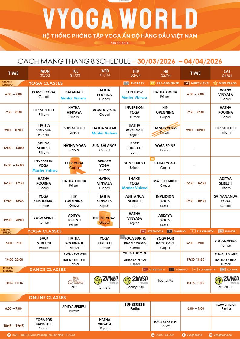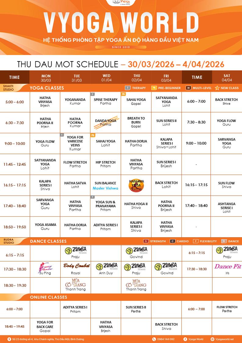 Vyoga World là chuỗi hệ thống giảng dạy Yoga hàng đầu tại Việt Nam với 100% giảng viên đến từ Ấn Độ - cái nôi của Yoga. Với 5 chi nhánh tại TP.HCM và Bình Dương, chúng tôi đang giúp đỡ cho hàng nghìn học viên cải thiện sức khỏe và vóc dáng mỗi ngày.